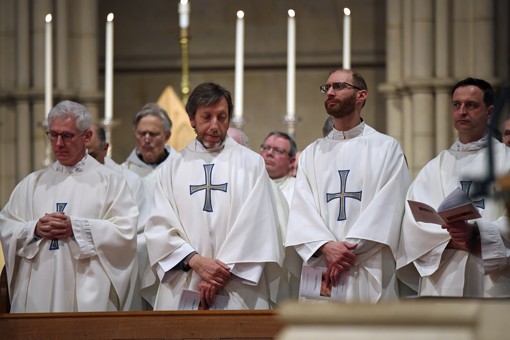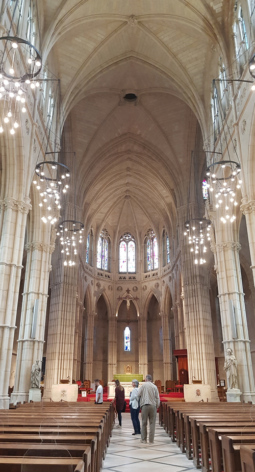 The architectural grandeur of St. Philip’s is seen to best advantage from a distance – from the streets of the town, from the banks of the river Arun or from beyond. Viewed from the A27 as one approaches from Worthing or from the Ford Road, the Cathedral with rooftops clustering around makes a delightful picture. The West facade is particularly striking with the figures of Christ and his Apostles and at the apex of the West portal a delicately sculpted Mary with her Divine Child. Above is the great rose window which is one of the finest features of the building.